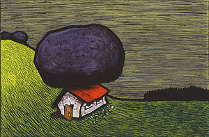 「明日は晴れるか」 2006年 3月 27日 アクリル板の裏にアクリル、アクリルガッシュ 30.3 × 45.5 cm 個人蔵