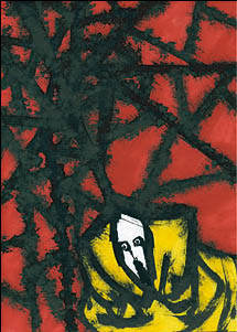 画集掲載 No.50「蜘蛛」…くも 1997年 紙に墨、マーカー 29.6 × 21 cm