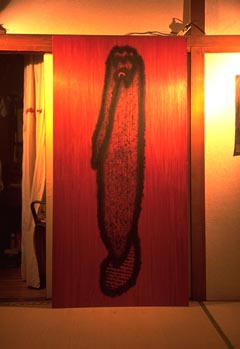 Publish No.65 " There is a living thing somewhere " 1998 Oriental ink , marker ink on plywood 182 × 91 cm